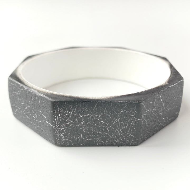 Retro Octagon Resin Silver Crackle Bangle Bracelet